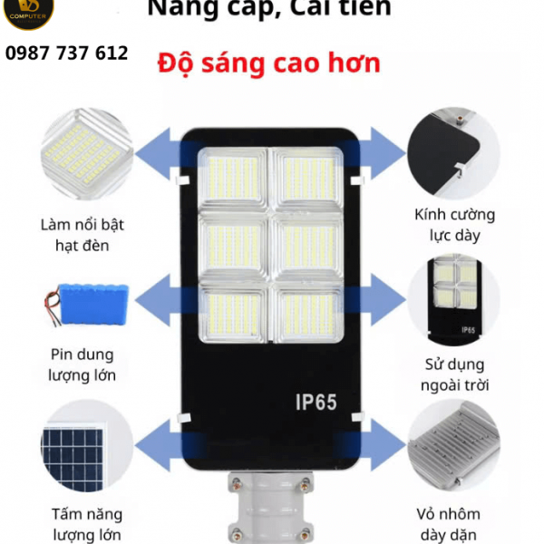 - Bộ sản phẩm gồm: Đèn + tấm pin NLMT + điều khiển từ xa + cần đèn