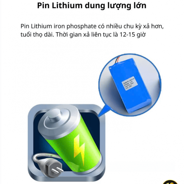 - Pin dung lượng lớn: Pin lưu trữ năng lượng hiệu quả, giúp đèn hoạt động lâu dài sau mỗi lần sạc đầy.